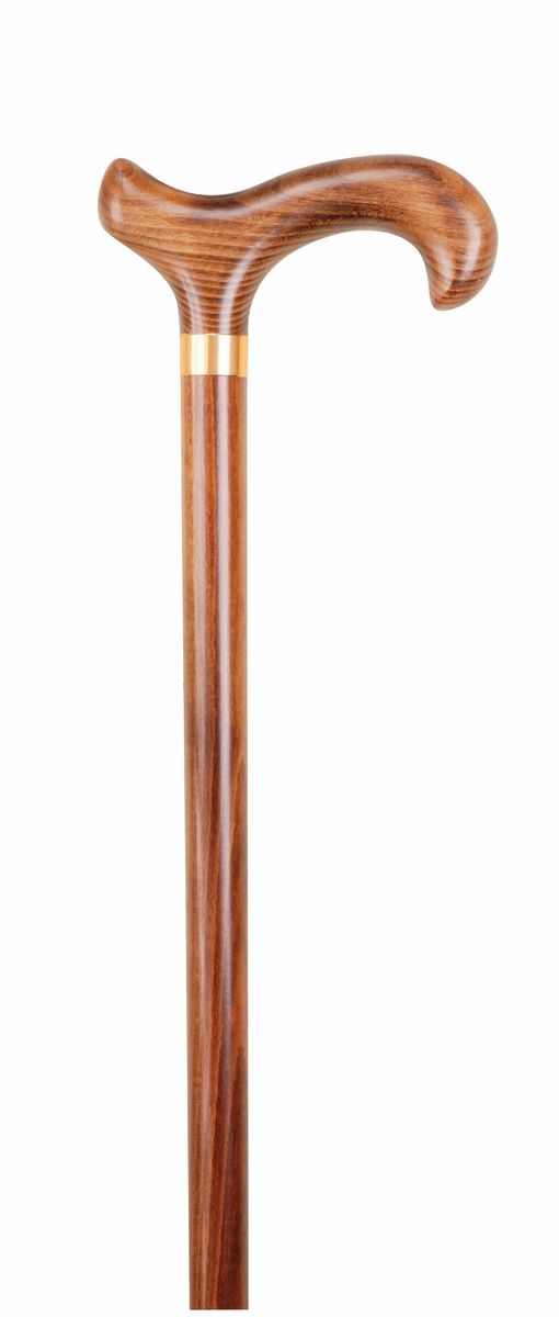 £37.99This brown flame-scorched beech wooden derby walking stick with a brass collar is very robust and functional. The classic contours allow the stick to be hung over the arm and offers a supportive and comfortable grip.