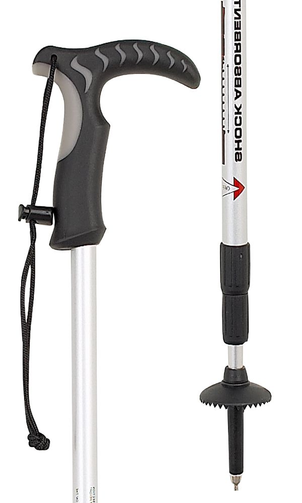 £11.99 £14.99Silver walking stick handle hiking pole. The hiking pole is made from a strong and lightweight aluminium construction. Adjustable in height it features a contour moulded handle, comfortable wrist strap and shock absorbing insert. The carbide steel tip and removable rubber ferrule make this hiking pole suitable for all types of walking surface. Adjustable in height from 63cm (25") to 135cm (53").
