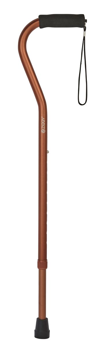 This offset cane features a comfortable foam grip handle and includes a wrist cord and ferrule for added security and stability.