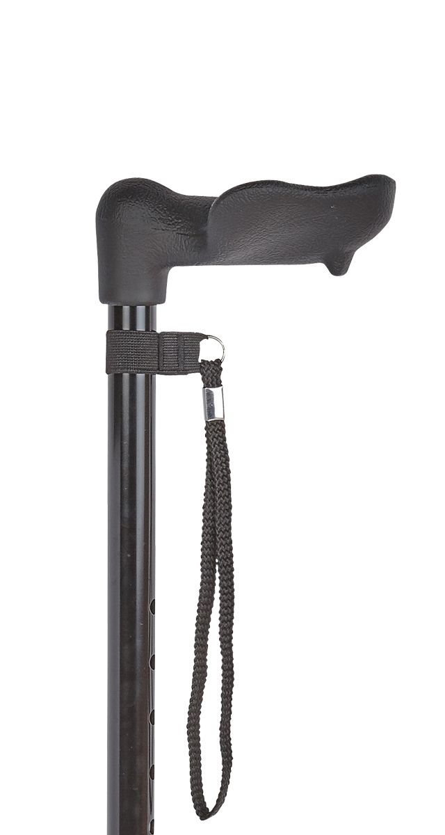 £20.99Height adjustable walking stick. Strong and lightweight aluminium walking stick with anatomical handle thus providing natural comfort and support. Wrist cord and ferrule included. Adjustable in height from 26" to 35". User Weight 100kgs.