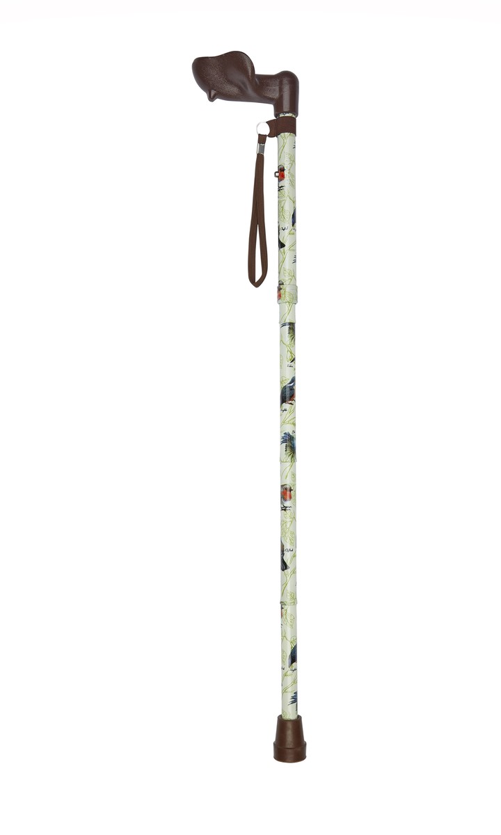 £23.99Fashionable, functional and foldable. This strong and convenient height adjustable folding walking stick folds into 4 sections and simply adjusts to the correct height. Beautiful hand-drawn garden birds design exclusive to Charles Buyers featuring a Robin, Blue Tit, Kingfisher, and Chaffinch.