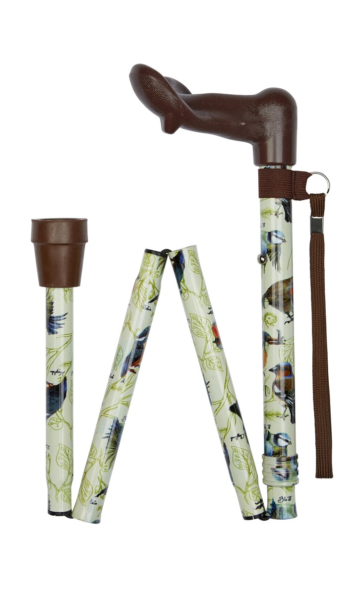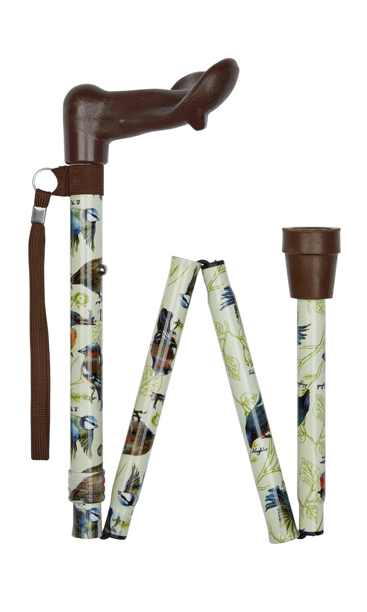 Garden Birds Pattern Folding Stick With Anatomical Handle