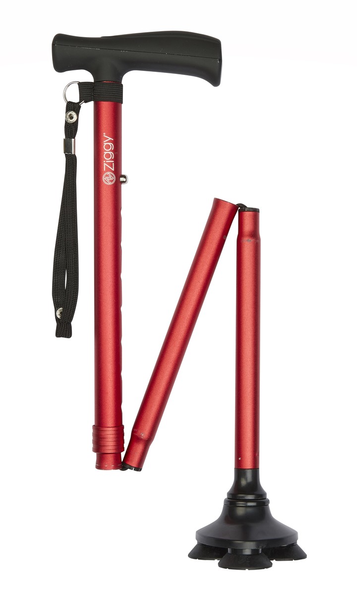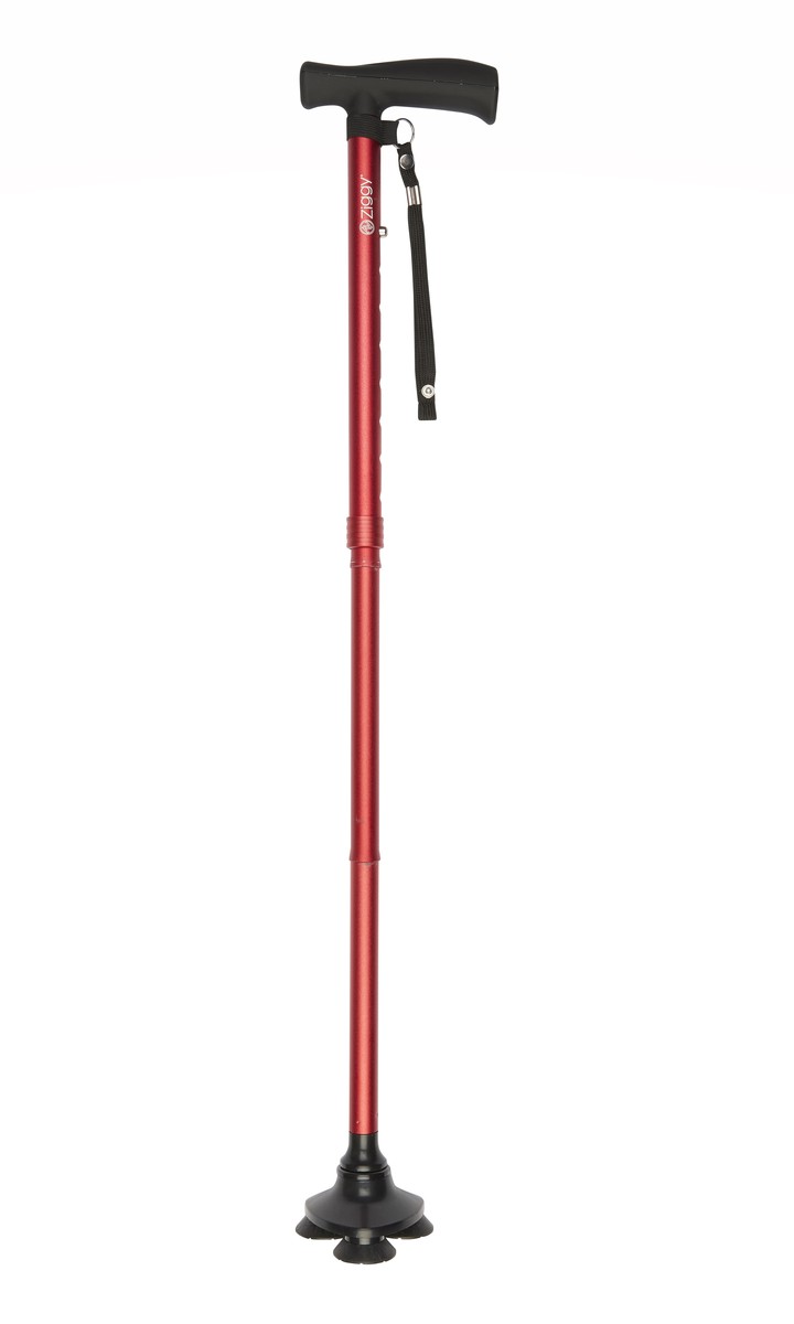 The Tribase has three rubber feet for extra grip which allows it to stand on its own. Strong and lightweight height-adjustable aluminium walking stick, that folds into 3 sections for convenience.