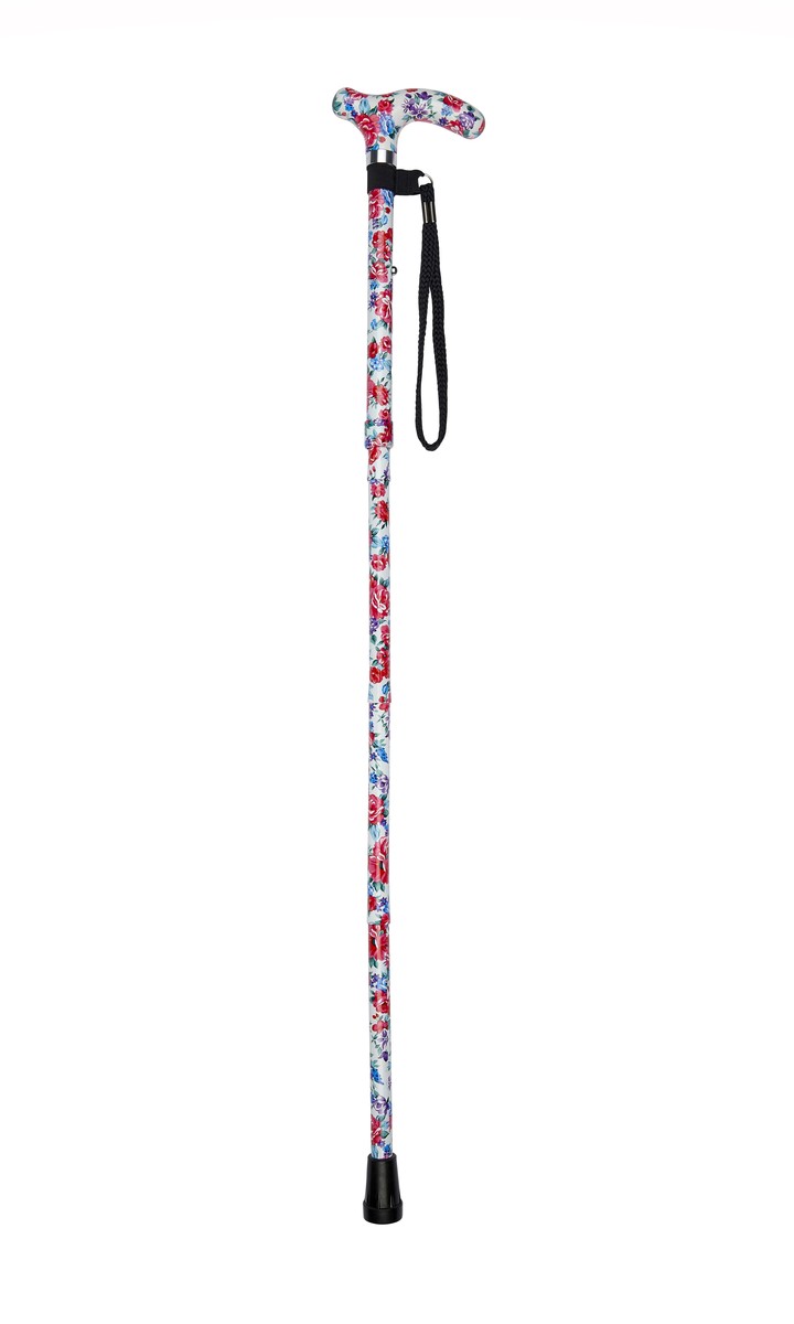 The aluminium walking stick is strong and lightweight and features a comfortable patterned plastic petite derby-style handle. The petite handle is ideal for those with smaller hands.