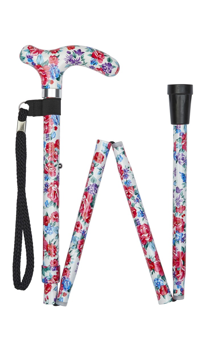 White Floral Pattern Folding Stick With Petite Patterned Handle
