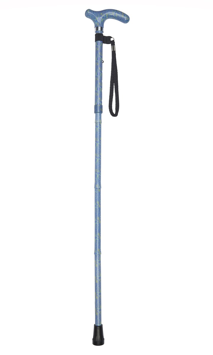 The aluminium walking stick is strong and lightweight and features a comfortable patterned plastic petite derby-style handle. The petite handle is ideal for those with smaller hands.
