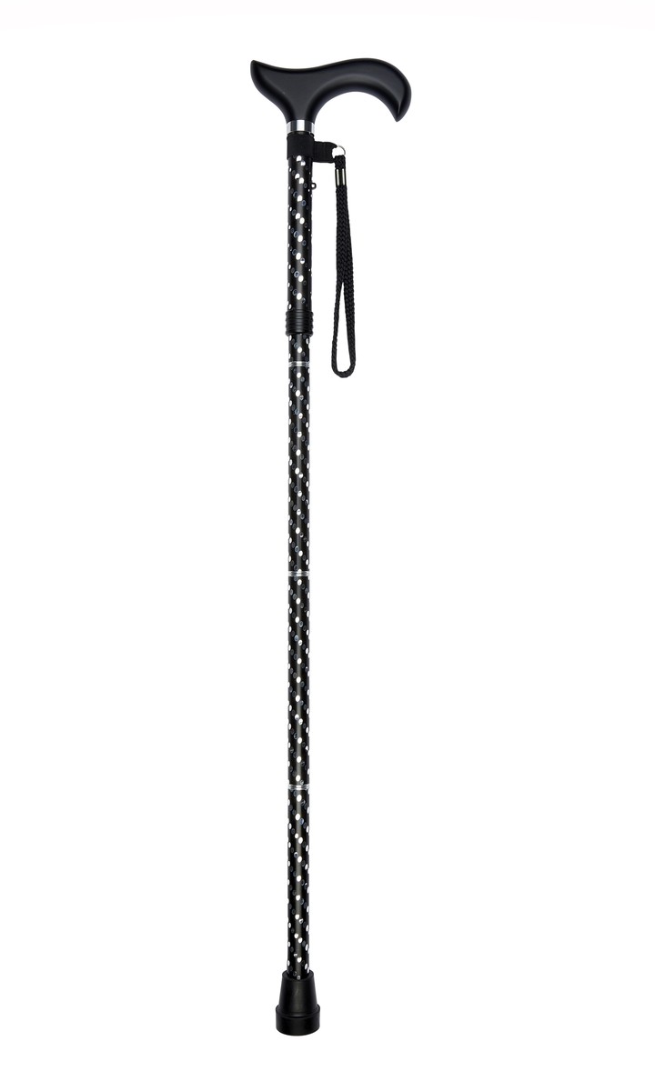 £47.99Elegant engraved folding stick with colour matching handle and accessories add that little bit of sparkle to any outfit. This strong and convenient height adjustable folding walking stick folds into 4 sections and simply adjusts to the correct height.
