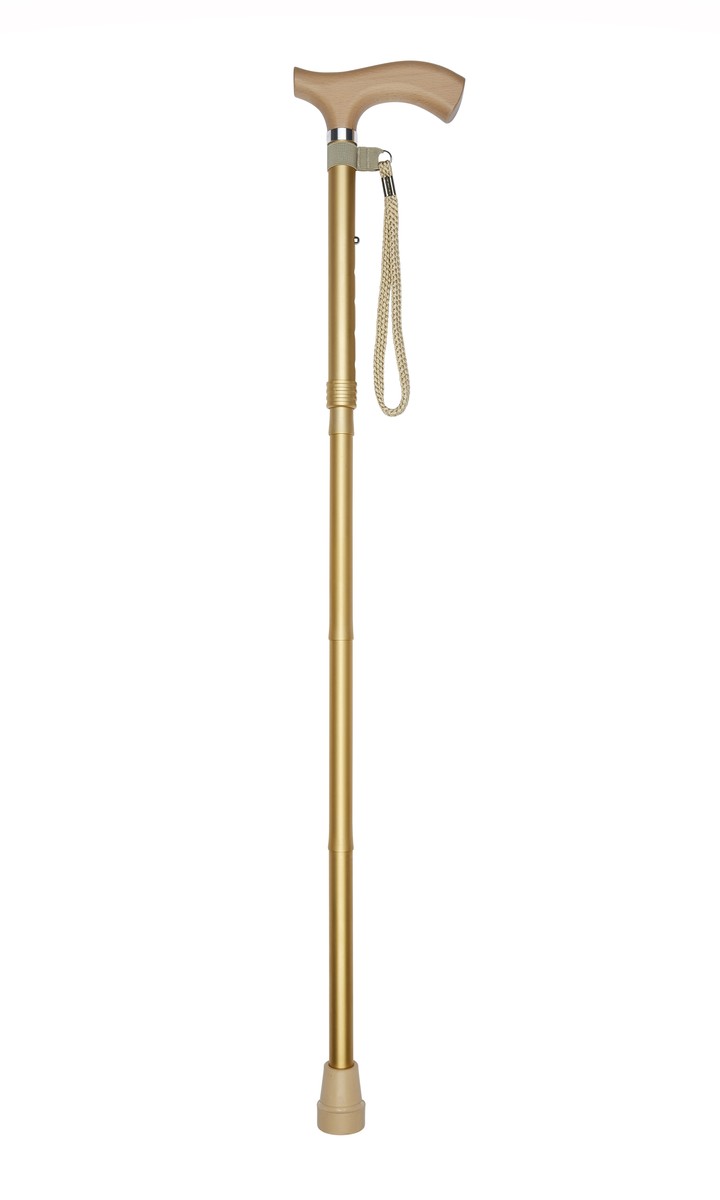 The aluminium walking stick is strong and lightweight and features a comfortable wooden crutch-style handle.