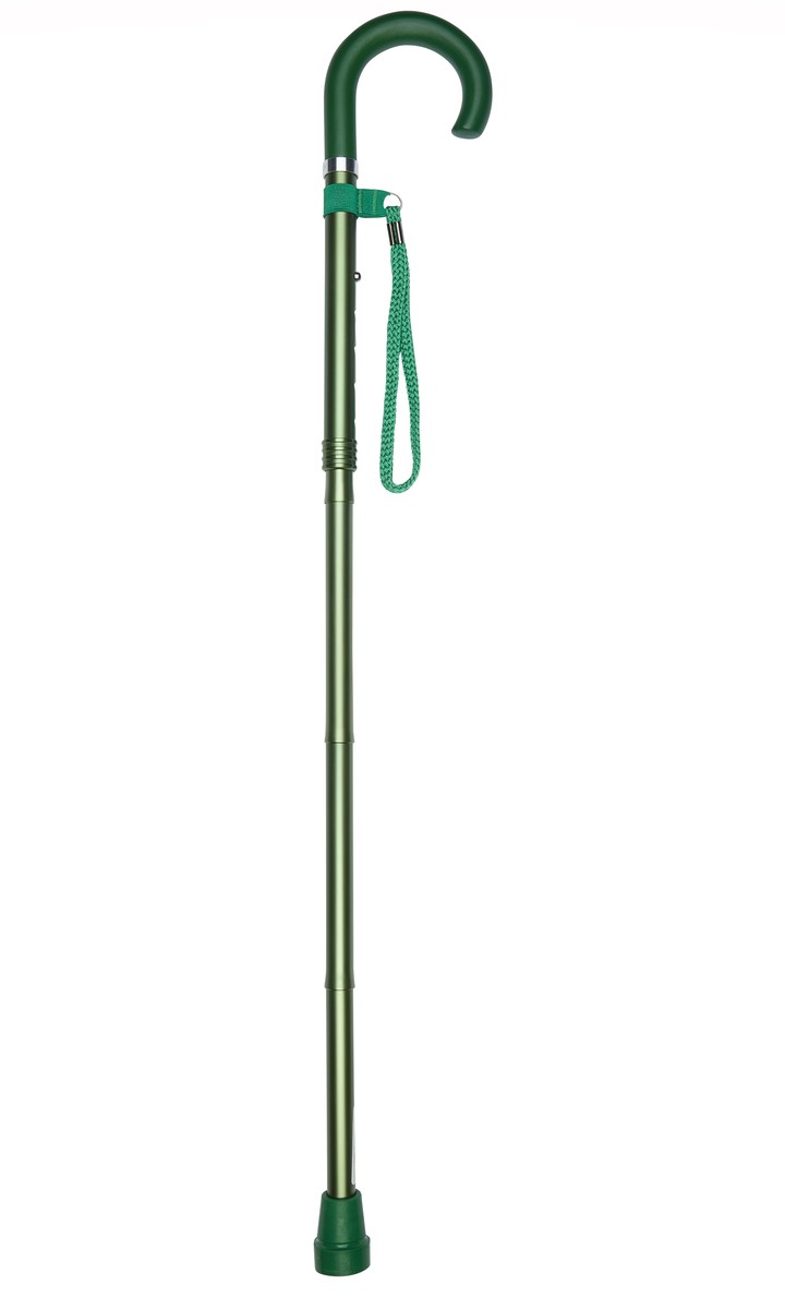 The aluminium walking stick is strong and lightweight and features a comfortable plastic crook-style handle.