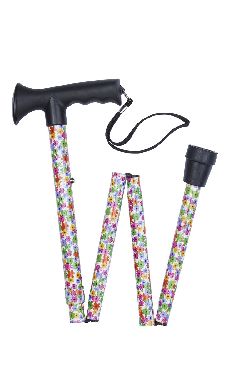 Multi Floral Pattern Folding Stick With Gel Grip Handle