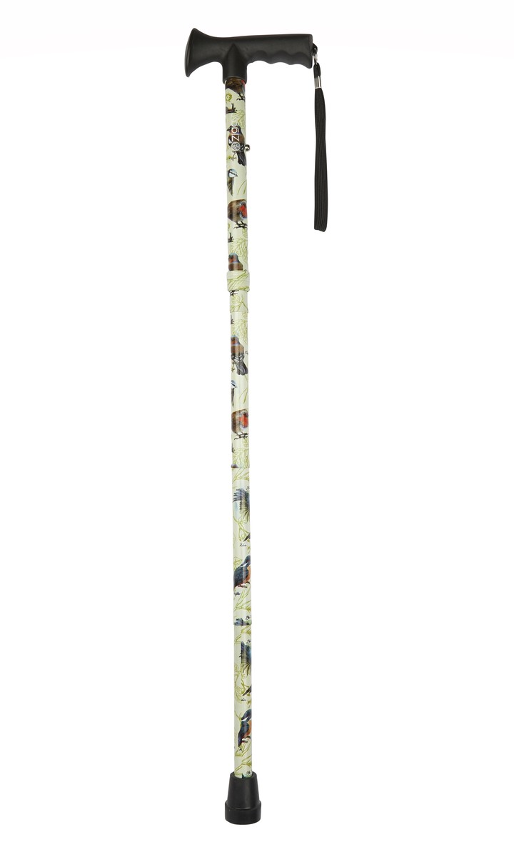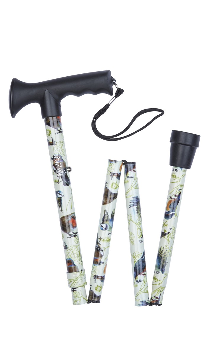 £21.99Fashionable, functional and foldable. This strong and convenient height adjustable folding walking stick folds into 4 sections and simply adjusts to the correct height. Beautiful hand-drawn garden birds design exclusive to Charles Buyers featuring a Robin, Blue Tit, Kingfisher, and Chaffinch.