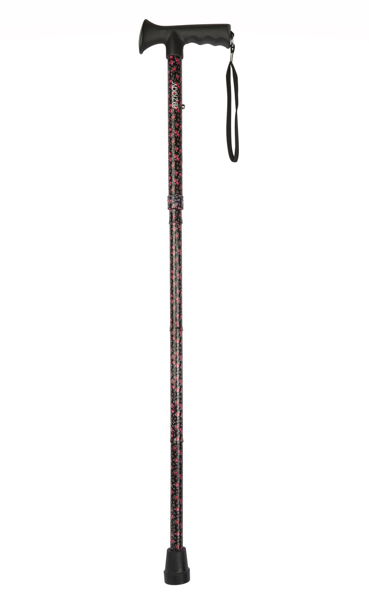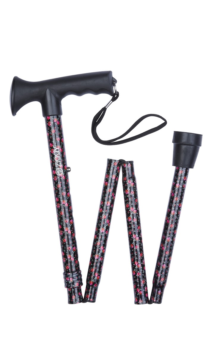 Black Floral Pattern Folding Stick With Gel Grip Handle