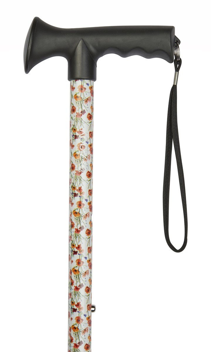 Poppies Pattern Adjustable Stick With Gel Grip Handle