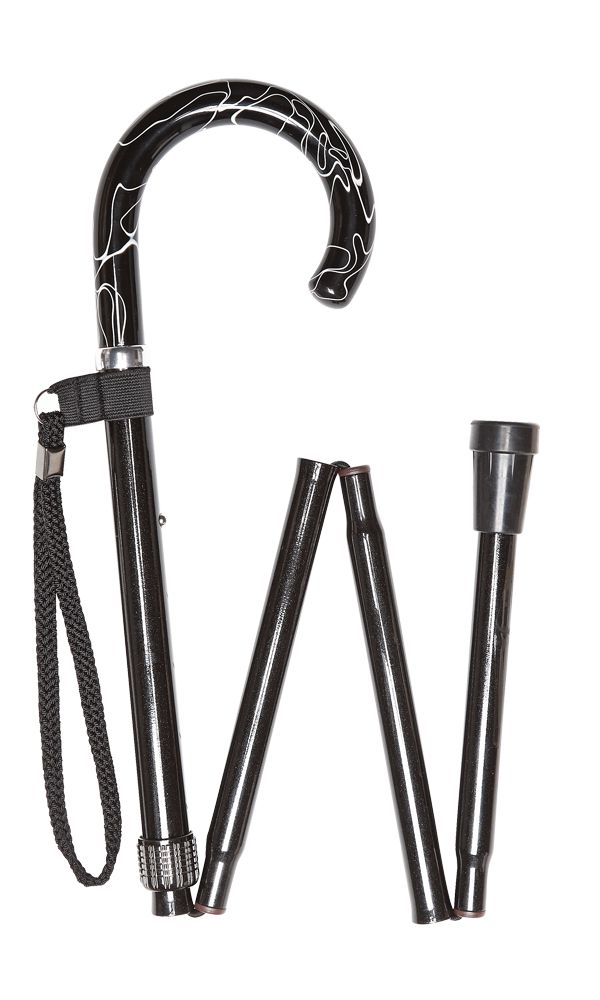 £23.99Height adjustable folding walking stick. Strong and lightweight aluminium walking stick with marble effect crook handle. Folds into 4 sections for convenience. Wrist cord and ferrule included. Adjustable in height from 34" to 38".